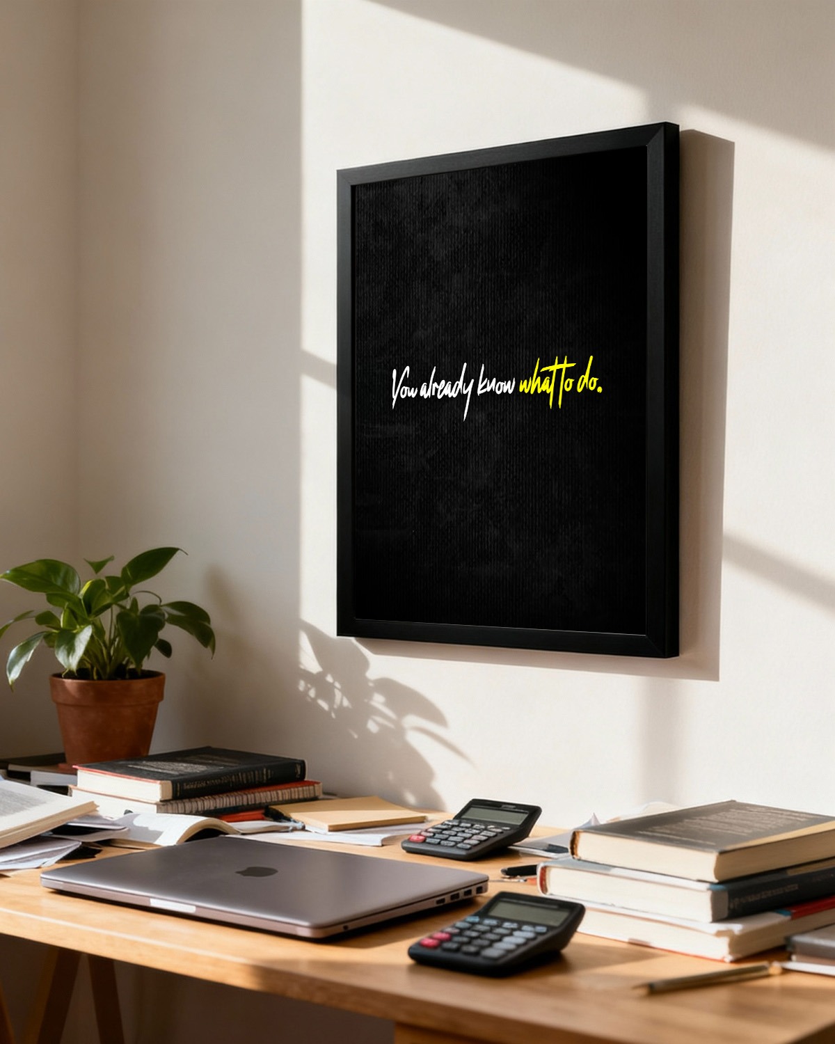 Trust yourself — you already know what to do. This motivational frame is a powerful daily reminder to take action, stay disciplined, and follow your goals with confidence. Perfect for your home, office, or gym, this A4-size (12×8 inches) wall art adds clarity, motivation, and purpose to your space with premium print quality and a sleek finish.